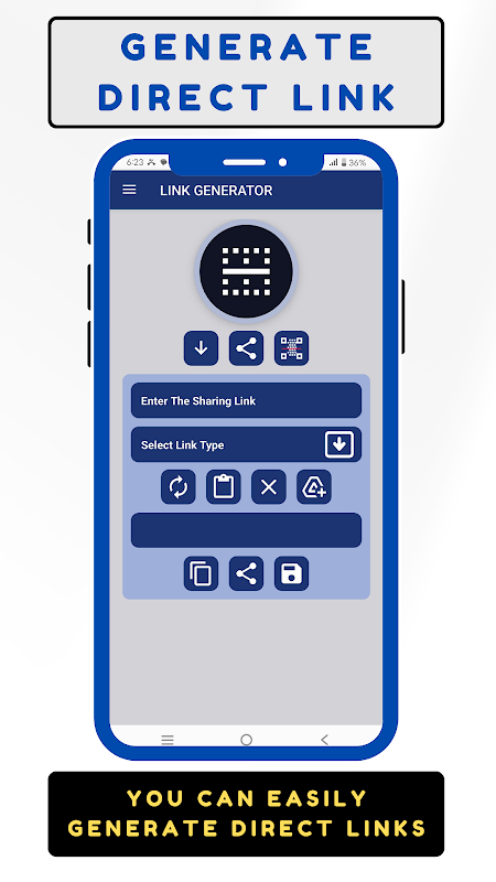 Generate direct download links, create QR codes, save links, and scan QR Codes.