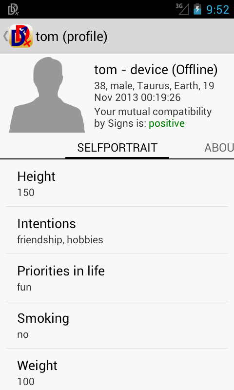 1. DirectDating does not send or save your profile information to or on any dedicated web-server or 3-rd party services. All data is stored locally and available only to persons who meets your requirements.