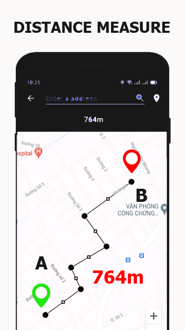 With the latest free features, Direction Maps now includes distance and area calculators, making it simple to measure distances between locations. You can also search for nearby places like ATMs, restaurants, and more, all in real-time using your phone’s GPS for precise latitude and longitude tracking.