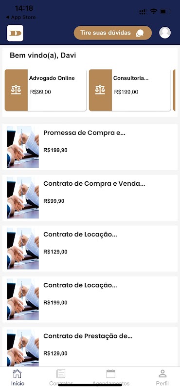 Without leaving your home or business, DireitoApp offers you services such as: online legal advice, through video conference; hiring a lawyer to file lawsuits; drafting contracts; in addition to monthly digital subscription, serving as preventive legal support to your company, related to contracts or labor, corporate, tax, consumerist, civil, among other legal services.