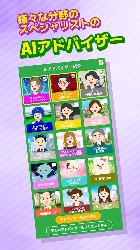 From everyday worries and troubling concerns to future plans, romance, work, and relationships, DISCA offers AI advisors with expertise in a variety of fields to quickly resolve any concerns you have.