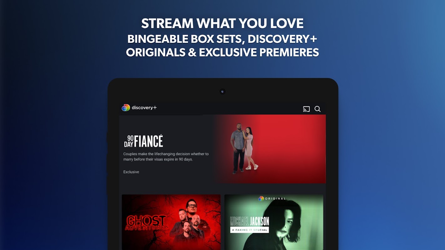 Stream exclusive Originals such as Michael Jackson: A Faking It Special, 90 Day Fiancé: The Single Life, Meghan & Harry: Recollections May Vary, Onision: In Real Life and Ghost Adventures: Cecil Hotel, only on discovery+.. Relive your favourite moments from 90 Day Fiancé, Gold Rush and Salvage Hunters with every episode ever available to stream now.