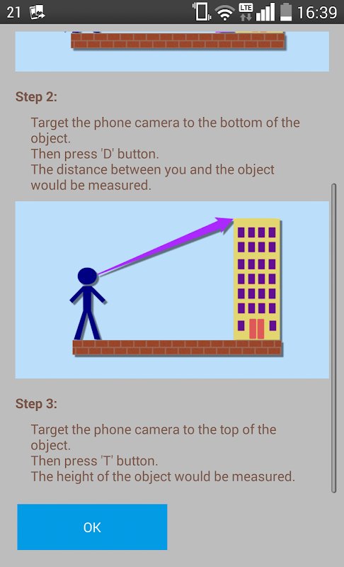 Step 3. Target the phone camera at the TOP of the object.Then press 'T' button. The height of the object would be measured.