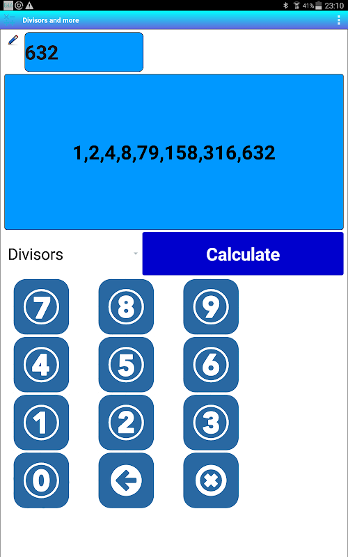 Useful APP to that calculates all the divisors of a number, lcm (least common multiple) and GCD (Greatest common divisor). Very useful for middle school kids.
