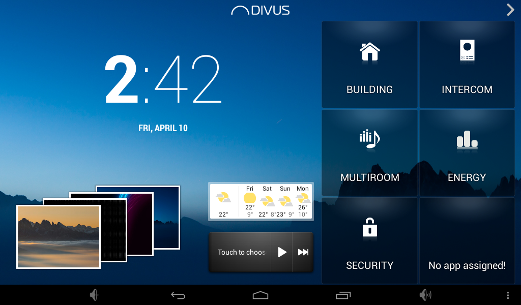 The DIVUS LAUNCHER app is the main app of DIVUS TOUCHZONE and can be understood as start screen / main graphical interface of the product.