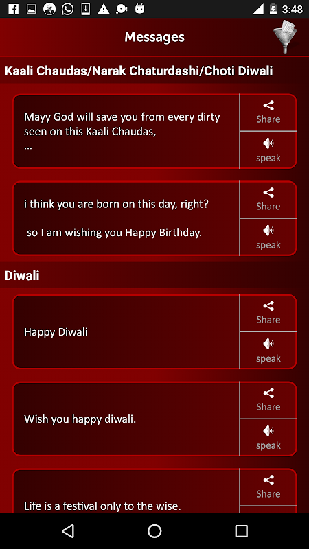 The app is designed to create and send a customized Diwali greeting message to your relatives, friends, family members.