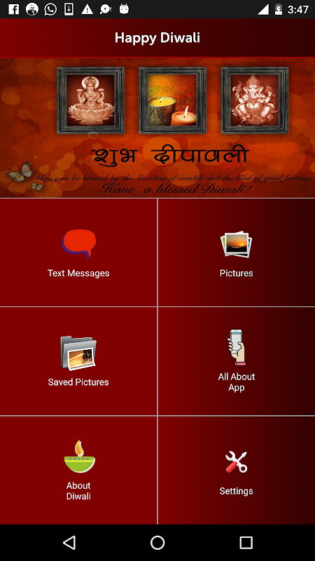 ★ Diwali app has more than hundreds pre-listed greeting message.