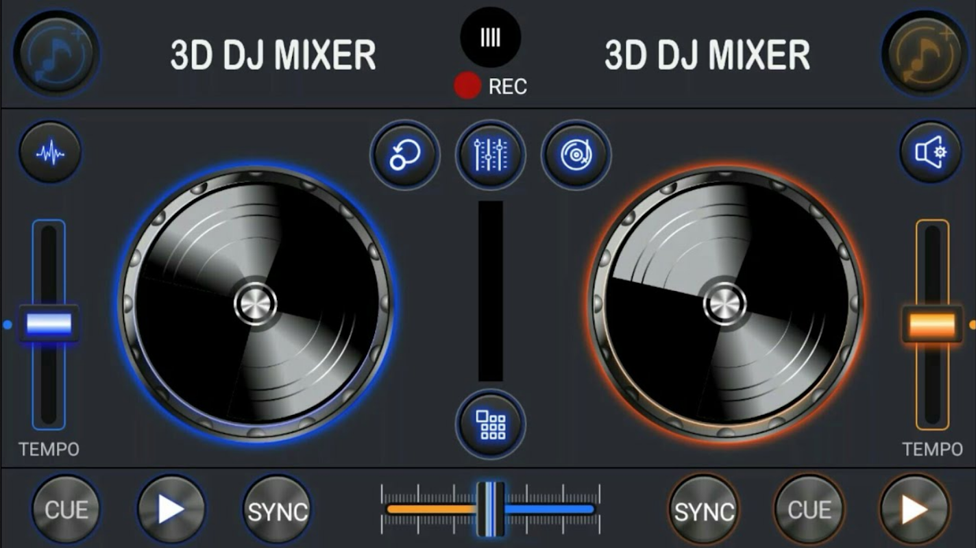 - Real crossfader with 2 virtual mixer TURNTABLES.