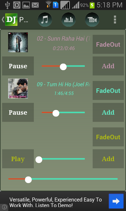 DJ Player music mixer pro - In this Section you can select 3 song & easily play with our Fade in & Fade out effect to play multiple song as DJ Software to up down your different song.