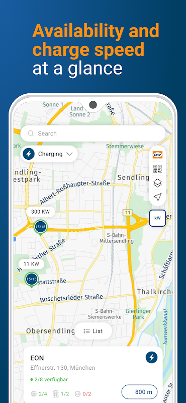 The new update of the DKV Mobility App not only gives you access to over 66,000 fuel stations, but to also more than 200,000 public charging points in our network. It's easy and is just one click away. Another unique feature is the intelligent route planning, where the DKV Mobility App automatically calculates the best route with optimal charging stops for long distances.