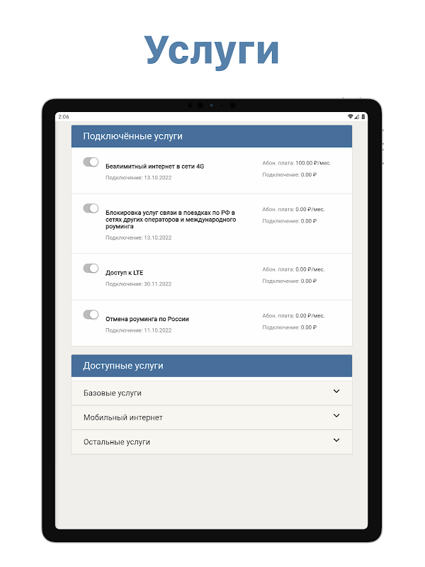 • view connected services and tariff