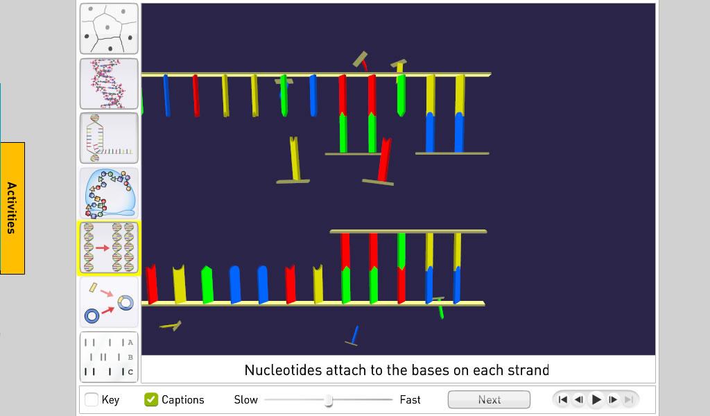 DNA is a collection of animations and simulations to show DNA, its structure and uses. You’ll use it to cover: