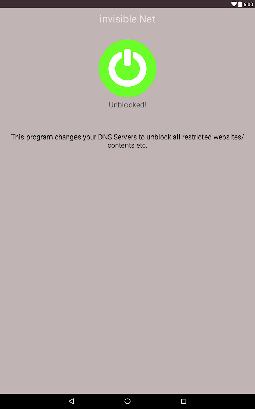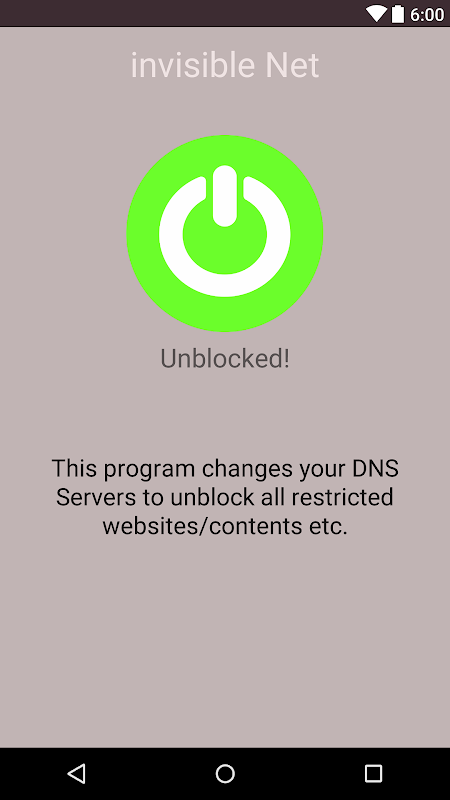 This is a simple DNS changer to unblock all restricted websites/contents and etc. It changes your DNS servers. It does not decrease your connection speed unlike free vpn services.