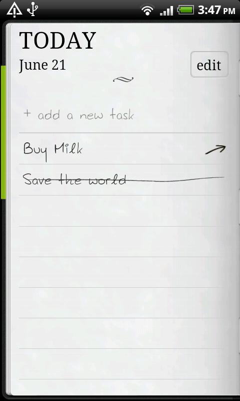 * A 3x3 and a 4x4 widget to show you a quick view of your tasks for today and let you add tasks quickly