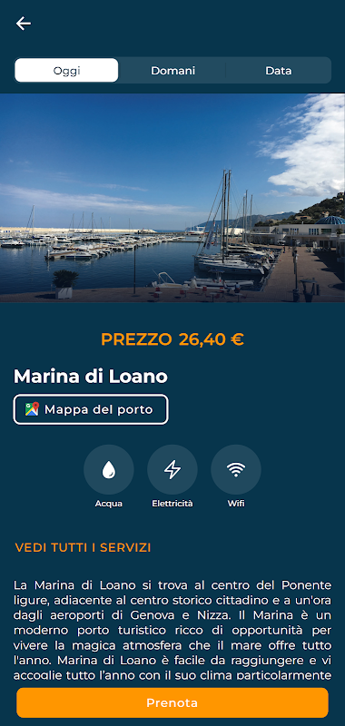 The service is provided for motor boats, sailing boats, catamarans, inflatable boats and boats in general. The application provides, following entry, the designation of the type of vessel for which you intend to book docking.