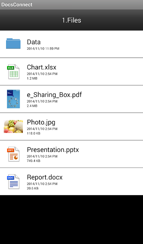 DocsConnect is an application that works on Android device to connect with RICOH e-Sharing Service.