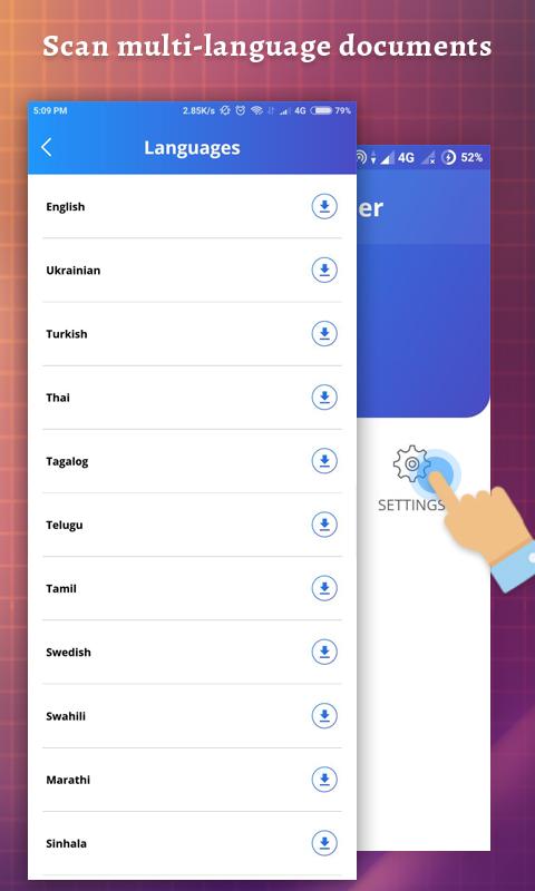 - Convert scanned document text to editable text file using OCR(optical character recognition). OCR supports more then 40 languages.