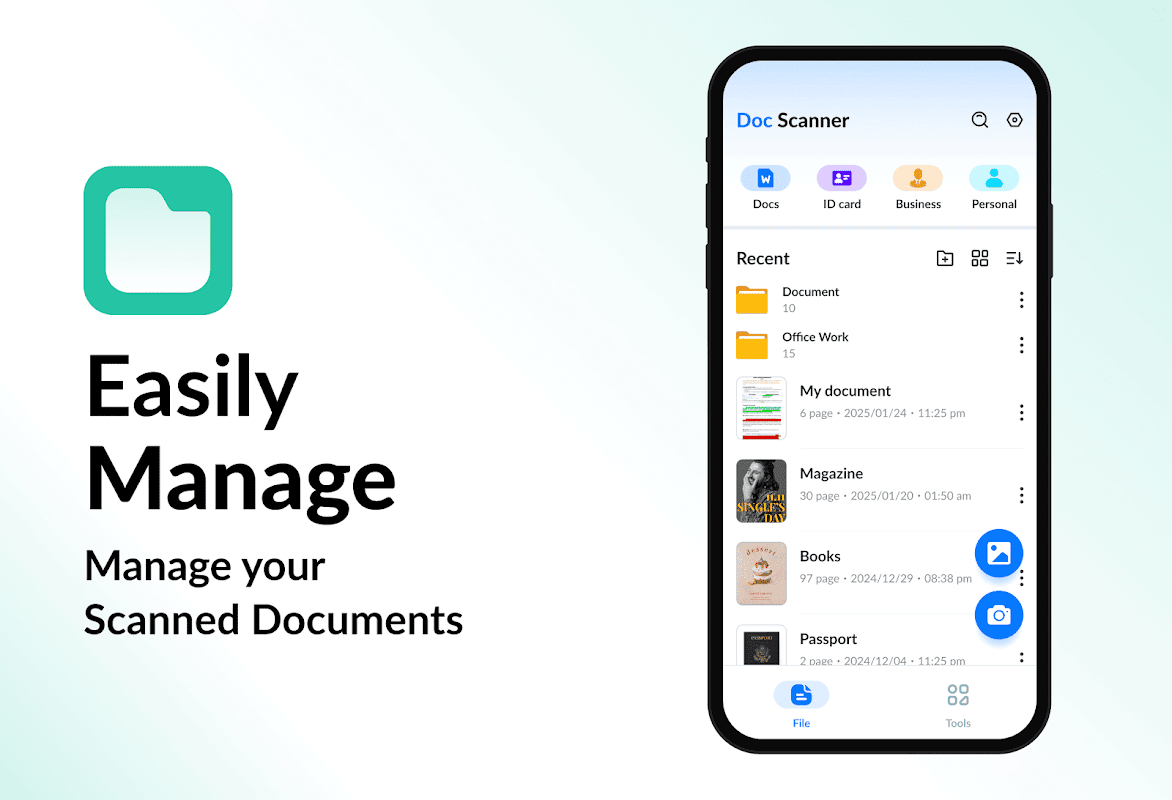 Doc scanner app is an all-in-one scanning solution. Scan any document, receipt, ID card, business card, book, photo or note and convert it into high-quality PDF or JPG files in seconds and share it.