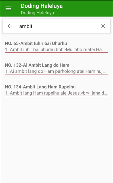 Aplikasi ini memiliki menu pencarian berdasarkan no halaman dan juga judul halaman. Hal ini akan mempermudah dalam pencarian judul tertentu dalam doding haleluya.