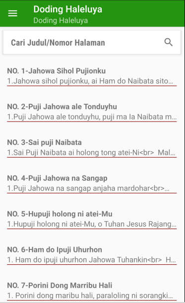 Doding Haleluya Simalungun Offline - Merupakan aplikasi yang berisi Buku Nyanyian Jemaat Berbahasa Simalungun (GKPS). Aplikasi ini dibuat untuk mempermudah jemaat beriman dalam beribadah dan memuji nama Tuhan.