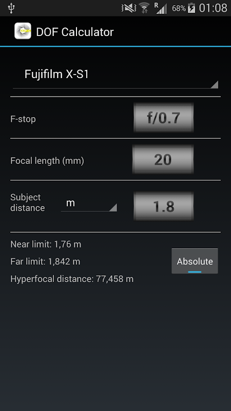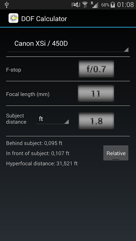 DOF, Depth of Field calculator 3.2