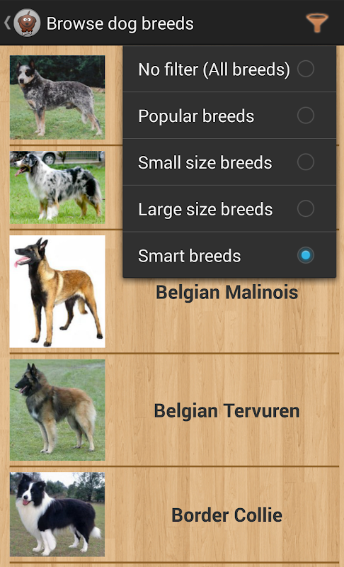 Dog breeds is a free app that lets you browse and review up to 200 dog breeds and test your knowledge. Simply select any dog breed from the list and read a short description and learn what you always wanted to discover about that breed.