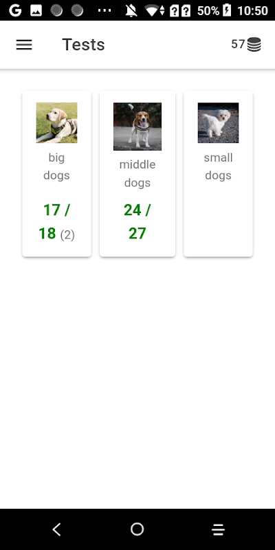 Quizzes cover three topics: small dogs, middle dogs and big dogs
