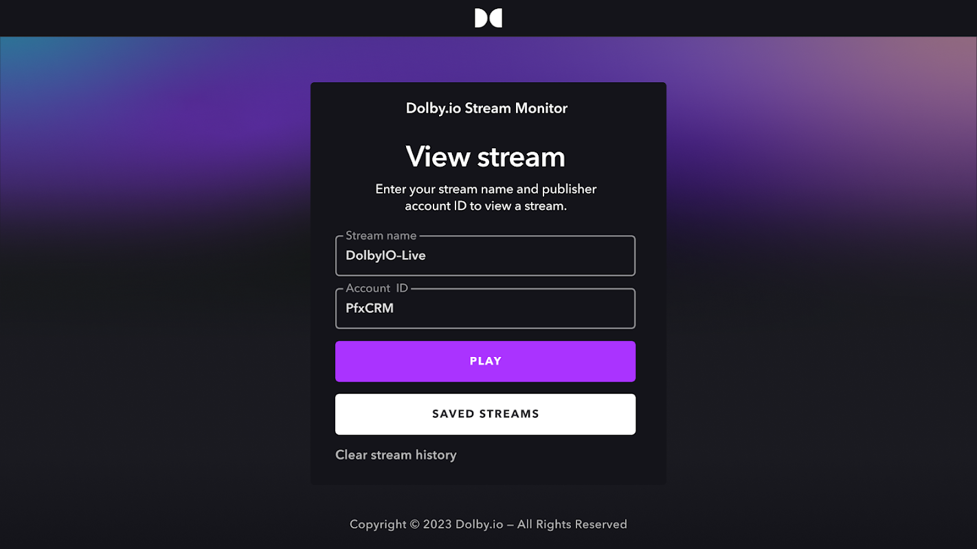 Dolby.io Stream Monitor 1.0.212