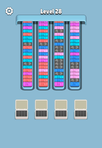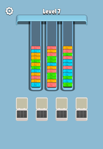Your task is to distribute the bins of banknotes into briefcases of the same colors as the bills. Initially, the briefcases do not have colors; they acquire color when a bill flies into it. Your task is not to reach a dead end so that you have the opportunity to fill out cases.