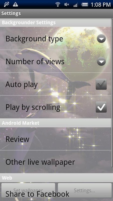 *To use:Menu>Wallpapers>LiveWallpapers->Dolphin-RYUKYU LOVERS Free