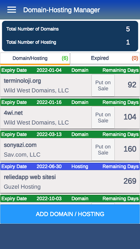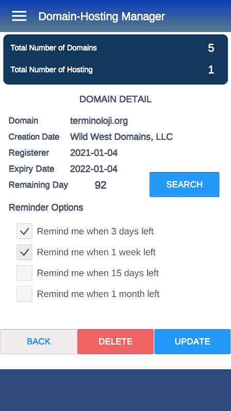With this application, you can easily track your domain and hosting. Thanks to the reminder feature, you will be informed before the registration period ends. So you don't pass recording times. You do not have to spend extra fees due to delay and extra effort to bring the project back to life.