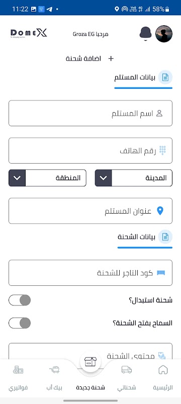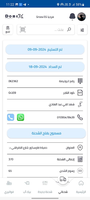 Through the customer interface, through the application, he can add shipments, follow up on his shipments, their status, the shipment’s itinerary, and follow up on his balances and accounts.
