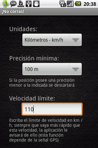 Do not run! is an application that helps to control how fast we drive. This way we can avoid the fines due to speed. You have only to set the limit speed and the application will notify us whenever we exceed the limit speed.