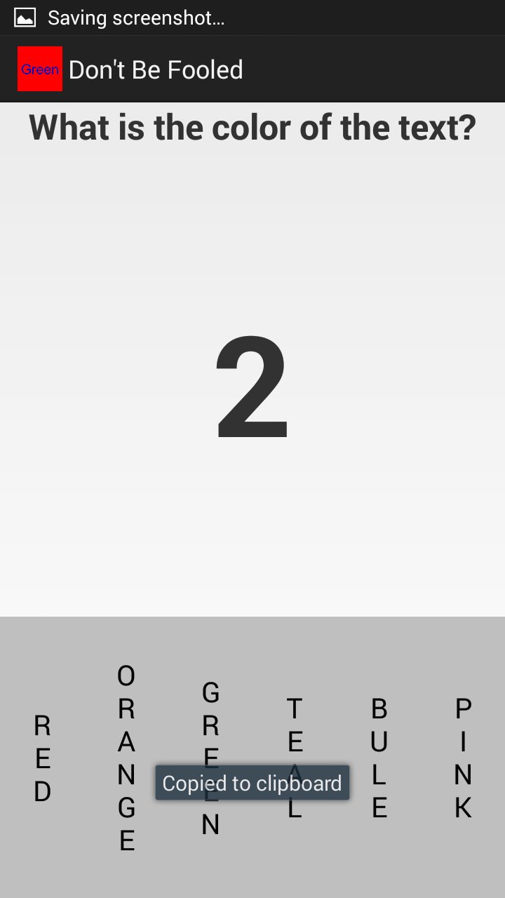 A simple game that requires you to select the colour of the word shown. Think it's easy? Wait till you try out.