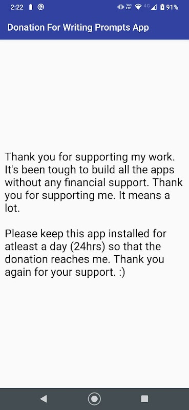 Please keep this app installed for at least 24 hours so that your donation reaches me.