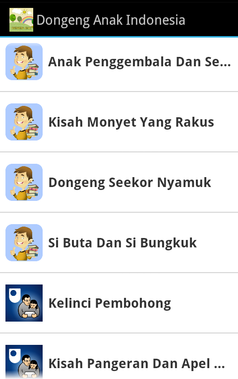 Dongeng Anak Indonesia adalah aplikasi android yang berisi berbagai macam cerita dan dongeng untuk anak-anak berbahasa Indonesia. Ada banyak cerita di dalamnya mulai dari cerita rakyat, dan kisah menarik yang berisi suri tauladan yang baik. Beberapa cerita dalam aplikasi ini antara lain Asal Usul Gunung Tangkuban Perahu, Legenda Candi Prambanan, Timun Mas, Kancil Dan Seruling Ajaib, Anak Katak Yang Sombong, dll.