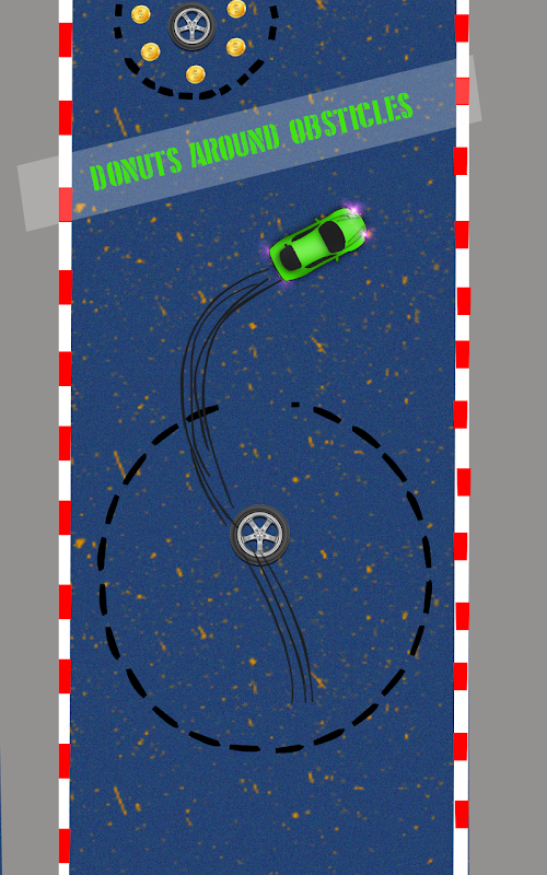 Drift racing is a maneuver performed while driving sports vehicle and making donuts with your alloy rims. Performing this maneuver entails rotating the rear or front of the sports vehicle around the opposite set of wheels in a continuous motion, creating (ideally) a circular skid-mark pattern of rubber on a roadway and possibly even causing the tires to emit smoke from friction. Do the Drift Donuts car racing again & again. Collect all the Drift Coins to make perfect drift racing and earn extra fuel driving your sports ride car. Donut Drift Racing gives you a unique experience in the handling of sport cars by the simple and the intuitive way. If you like to drift, get ready to spend many hours playing this donut drift car simulator 3D game. Animation of the deep smoke tires while donut drifting and paint donuts burning tires.