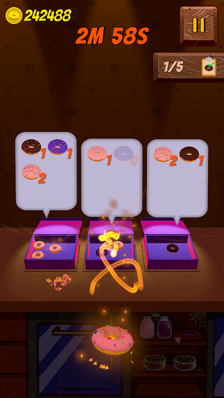 Do you want to throw some donuts in the boxes? Try to challenge your skills!