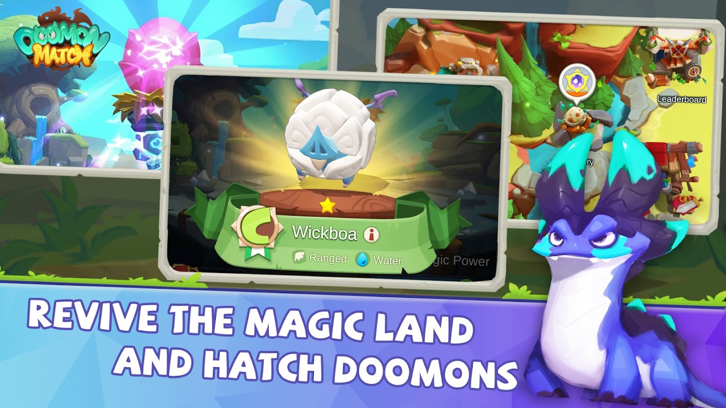 Welcome to the magical land of Doomon Match! Magical creature - Doomons on the floating islands become aggressive these days. Be ready to learn some Doomon knowledge and show your skill of training Doomons to revive the land!