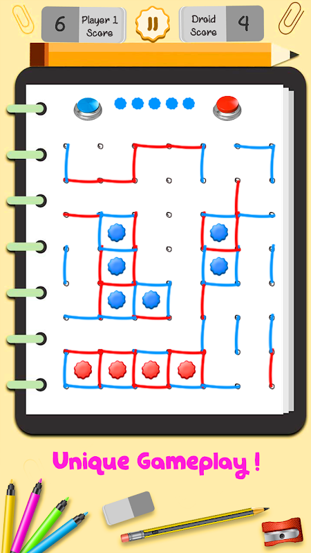 Dots and Boxes game to remember childhood. Also known as Dots and Boxes, Boxes, Squares, Square-it, Dots and Dashes,Dot Game. It is a mind storming game through which you can give your opponent a tough time as well as to robot. It is a quality game for time killers.