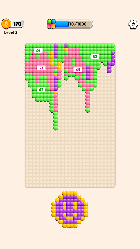 Dot Pile is an addictive color-matching puzzle game where you slide, drop, and pile up vibrant dot clusters.