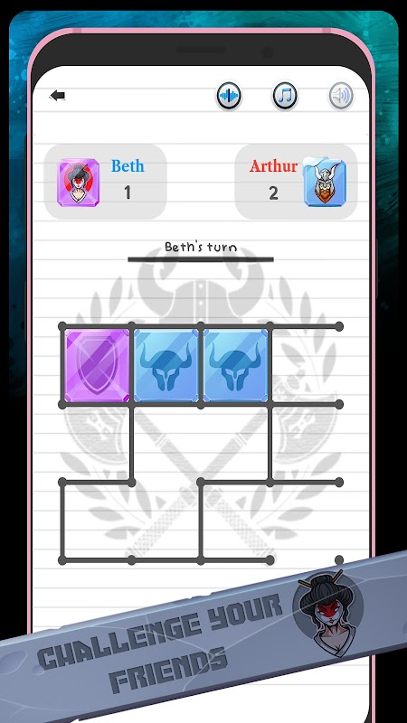 Classic Dots & Boxes from old days. Challenge your friends in this epic battle.