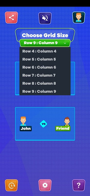 Close more boxes than your opponent to win. You can play against a robot (AI) as well as you can play against a friend on the same device. You can configure the dot matrix (rows x columns) from 4x4 to 9x9.