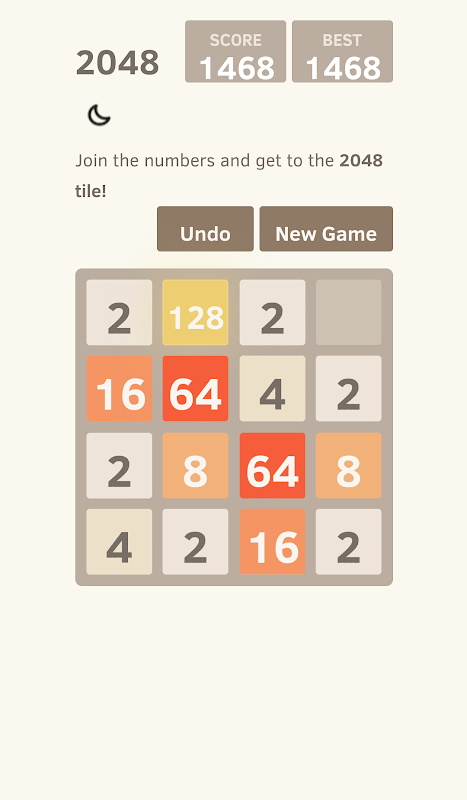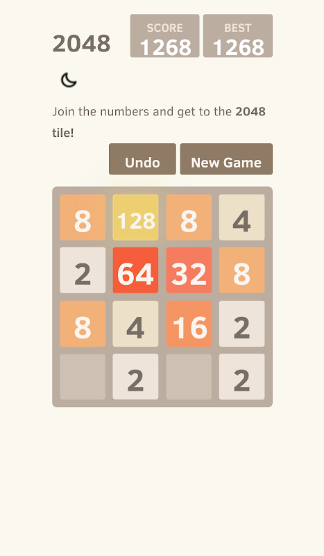 Swipe the screen to move tiles left, right, up, and down. When two tiles with the same number touch, they merge into one! Every swipe, a new tile will randomly appear in an empty spot on the board with a value of either 2 or 4. Slide the tiles to merge them, 2+2→4, 8+8→16 ...32 ...256 ...1024..., when 2048 tile is created, you win! Play this amazing Double Double game and have fun!