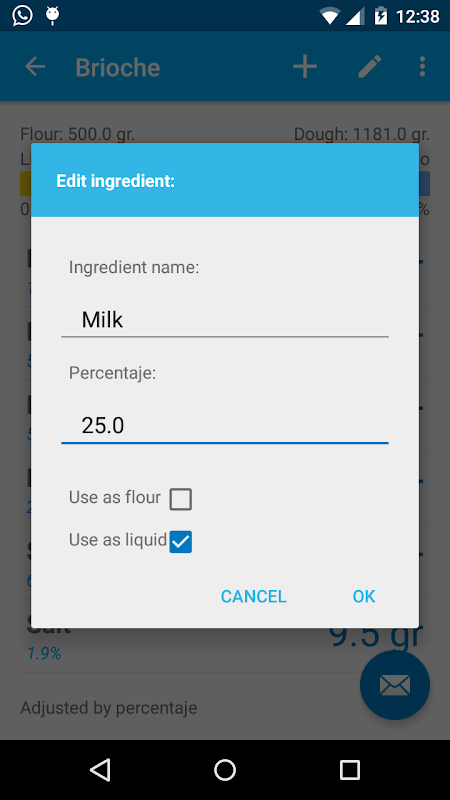 Applying the baker`s percentage, Doughlator automatically calculates weight of recipe ingredients in a easy and intuitive manner.