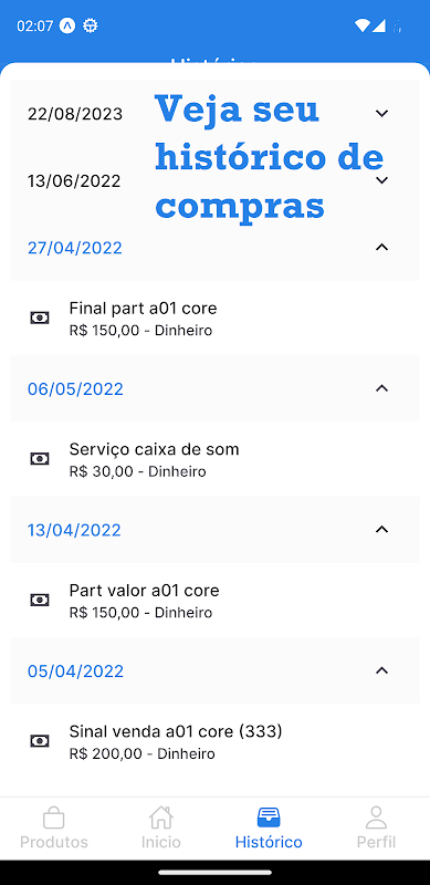 Keep track of all your purchases and maintenance carried out by our technical assistance in an organized and detailed way in the history tab.