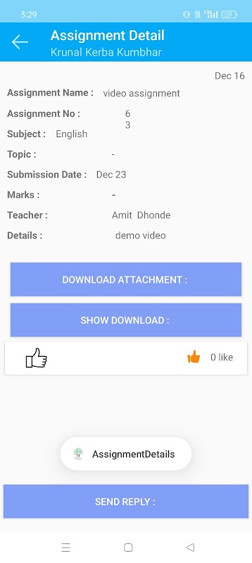 -Send class wise Assignment & Homework to students with additional Sample worksheet and document attachment facility