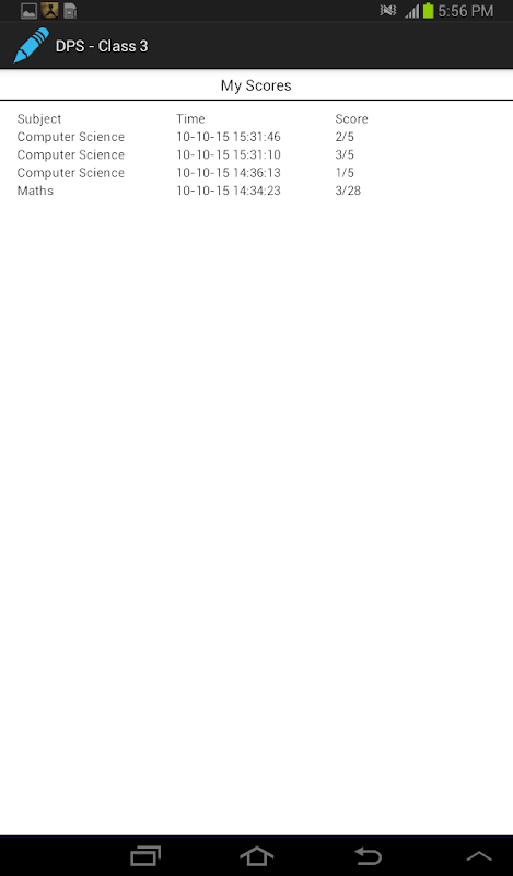 This android app contains tests on various subjects for DPS class 3 students. The subjects include: Maths, Computers, Science, English, Moral Science, General Knowledge. The Questions are multiple choice type with only one correct answer. This app will help the students to test their knowledge on the subject and prepare for their exams.