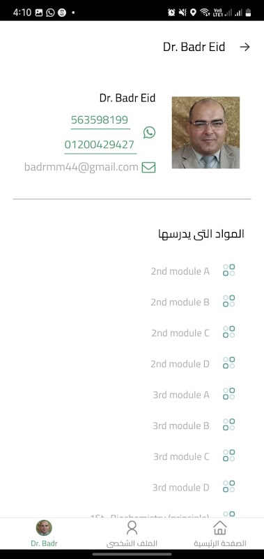 تطبيق يتضمن المواد المدرسة بوساطة دكتور بدر