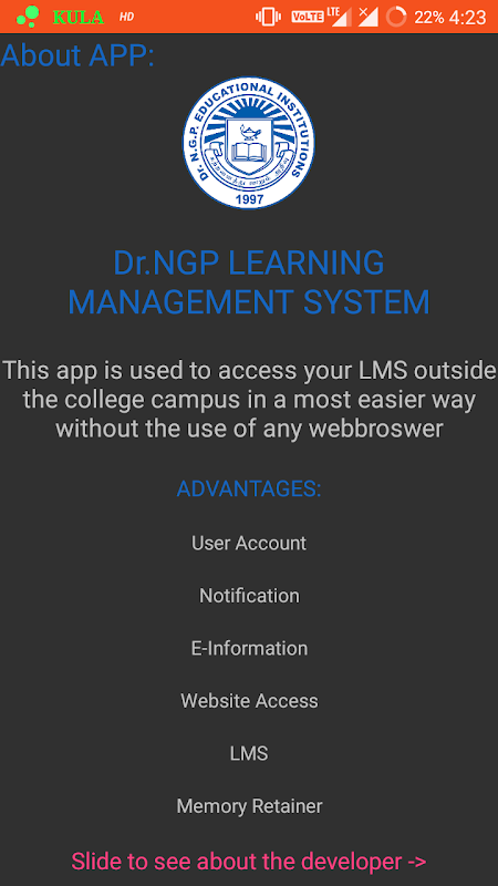 Dr.NGP-LMS gives access particularly to Learning management system of Dr.N.G.P Institute of technology for all the departments in most easier way without any hassle.